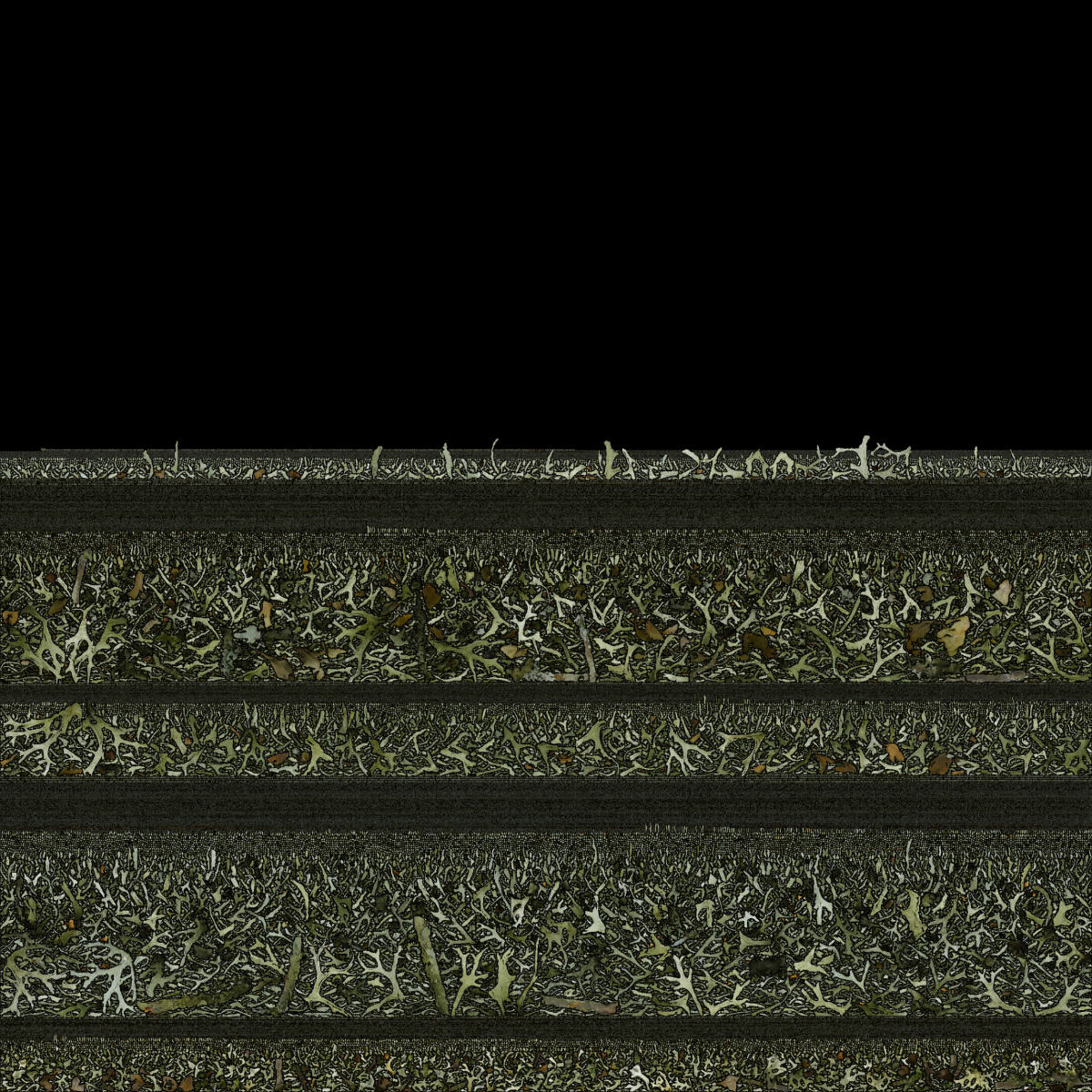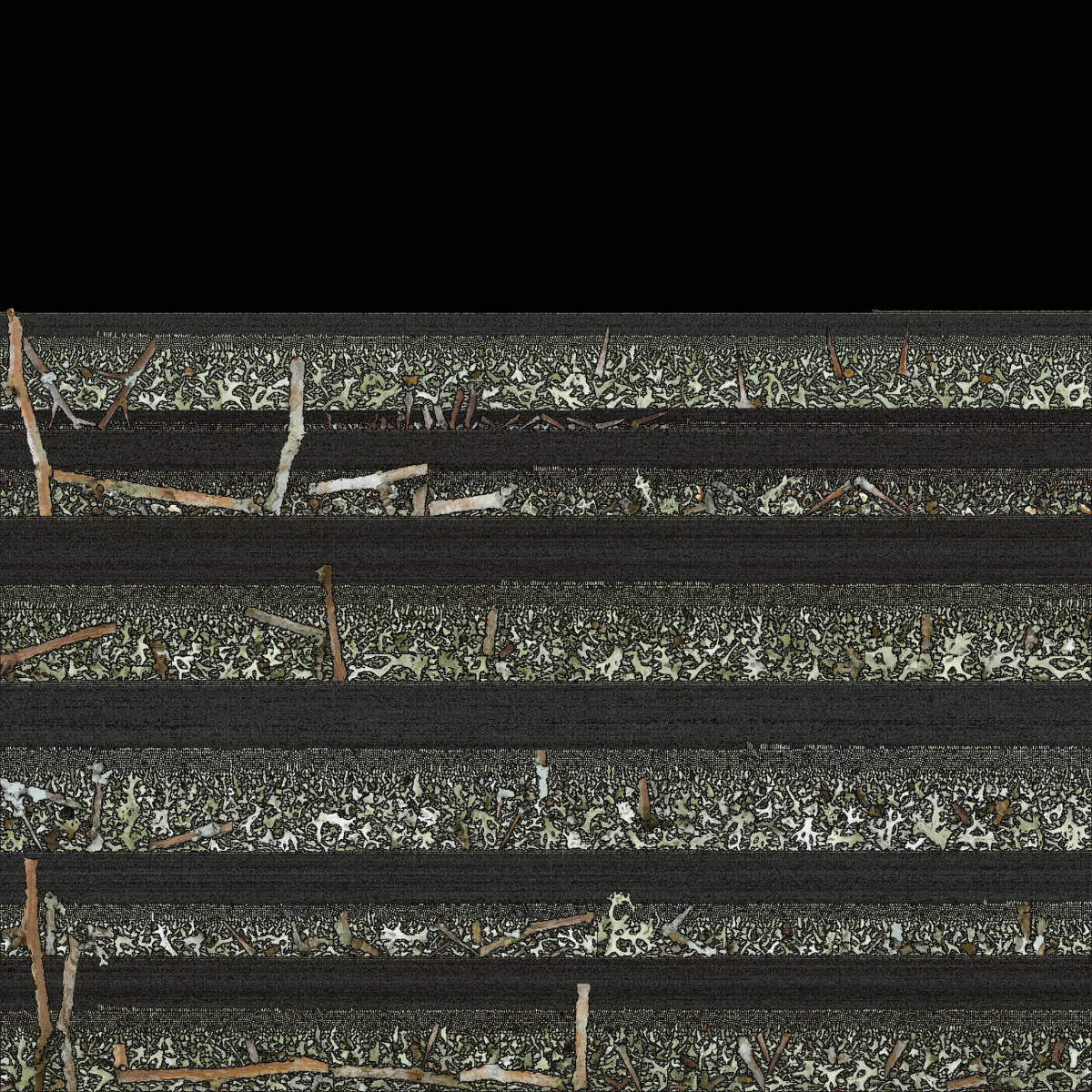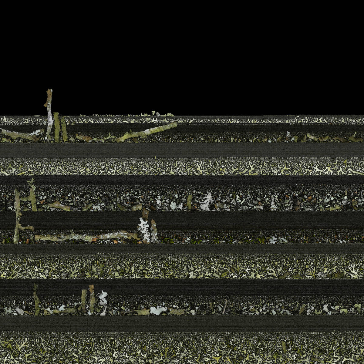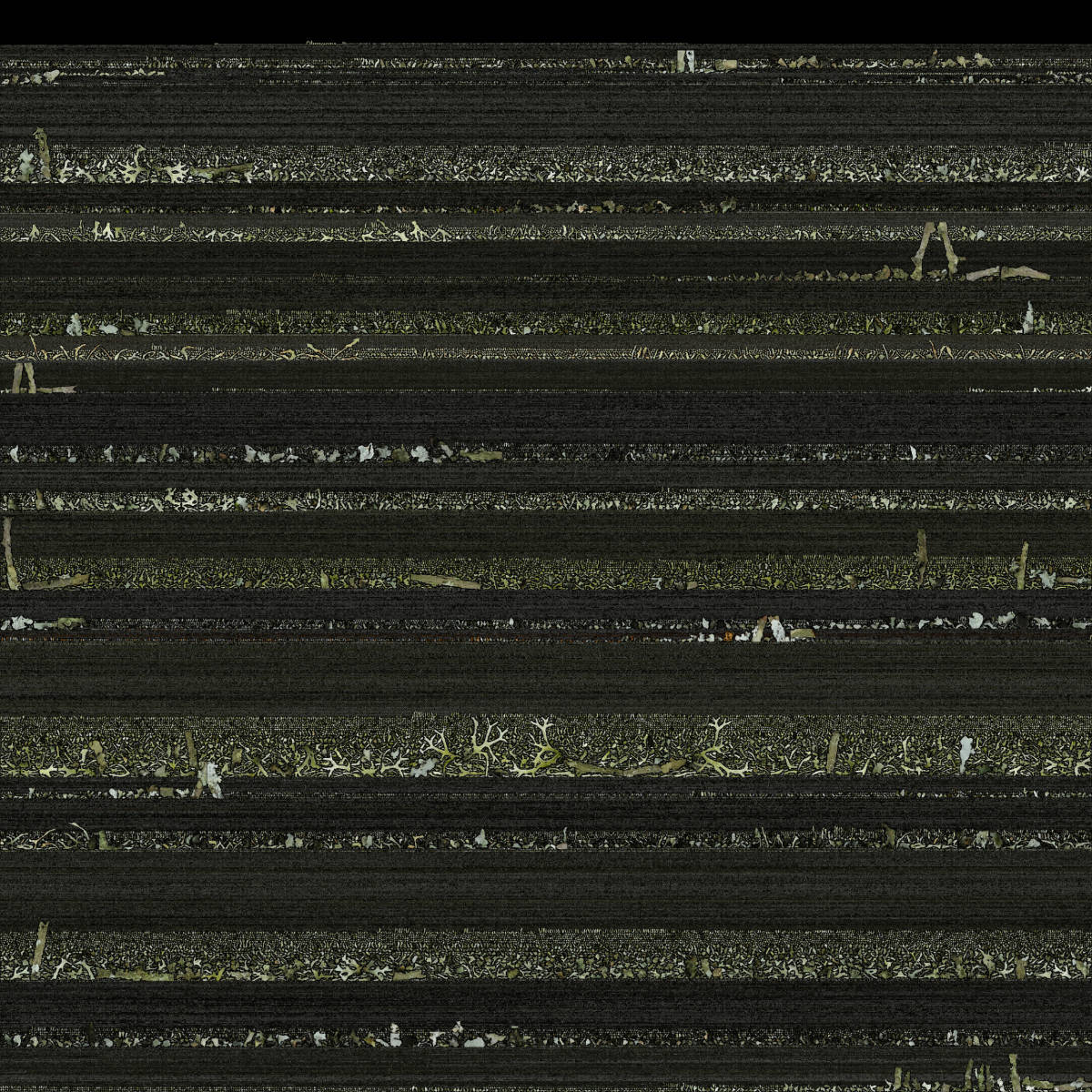 To create a photorealistic look and feel for a 3D model you can make a photo texture. This is the last step of the 3D reconstruction process in the Photogrammetry software. To be able to do this, the software unfolds the 3D model into a 2D shape. Think of it as a cardboard box that you unfold in a way that it becomes a 2D shape out of one piece. The software uses this fold-out to take parts of the original photos that were used to reconstruct the 3D model and stitch it in a way that if you fold it back to the 3D model, you have a 3D version of the photo. This 2D photo file is used as texture to wrap around the the meshed 3D model. This finally gives the photo realistic look and feel of the 3D model. These generated photo textures are sometimes little artworks by themselves. Like abstract generative paintings. On the left you find a serie of these photo textures.